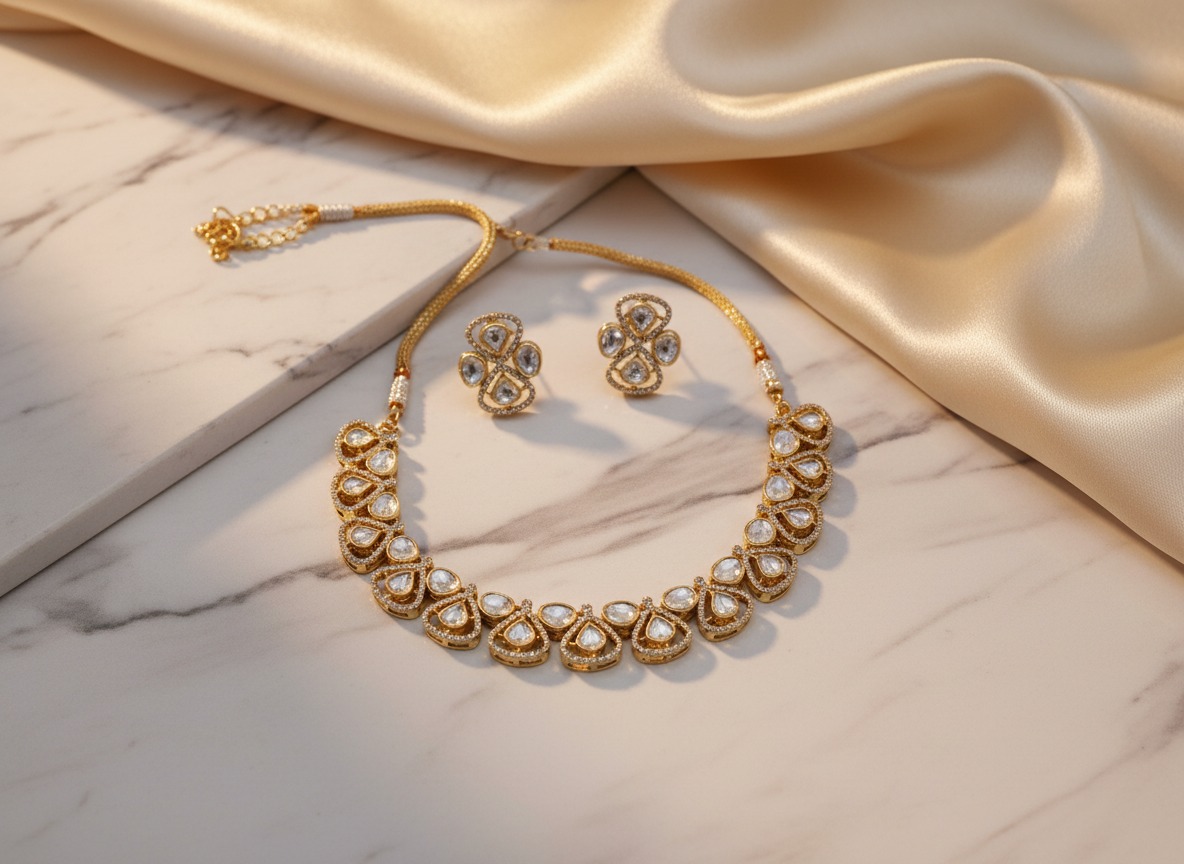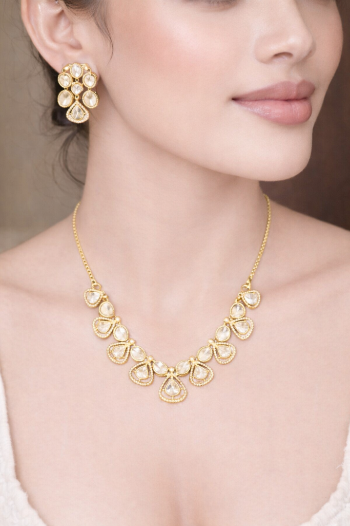 Chandrika Ivory Teardrop Polki Kundan gold plated studded Necklace Set