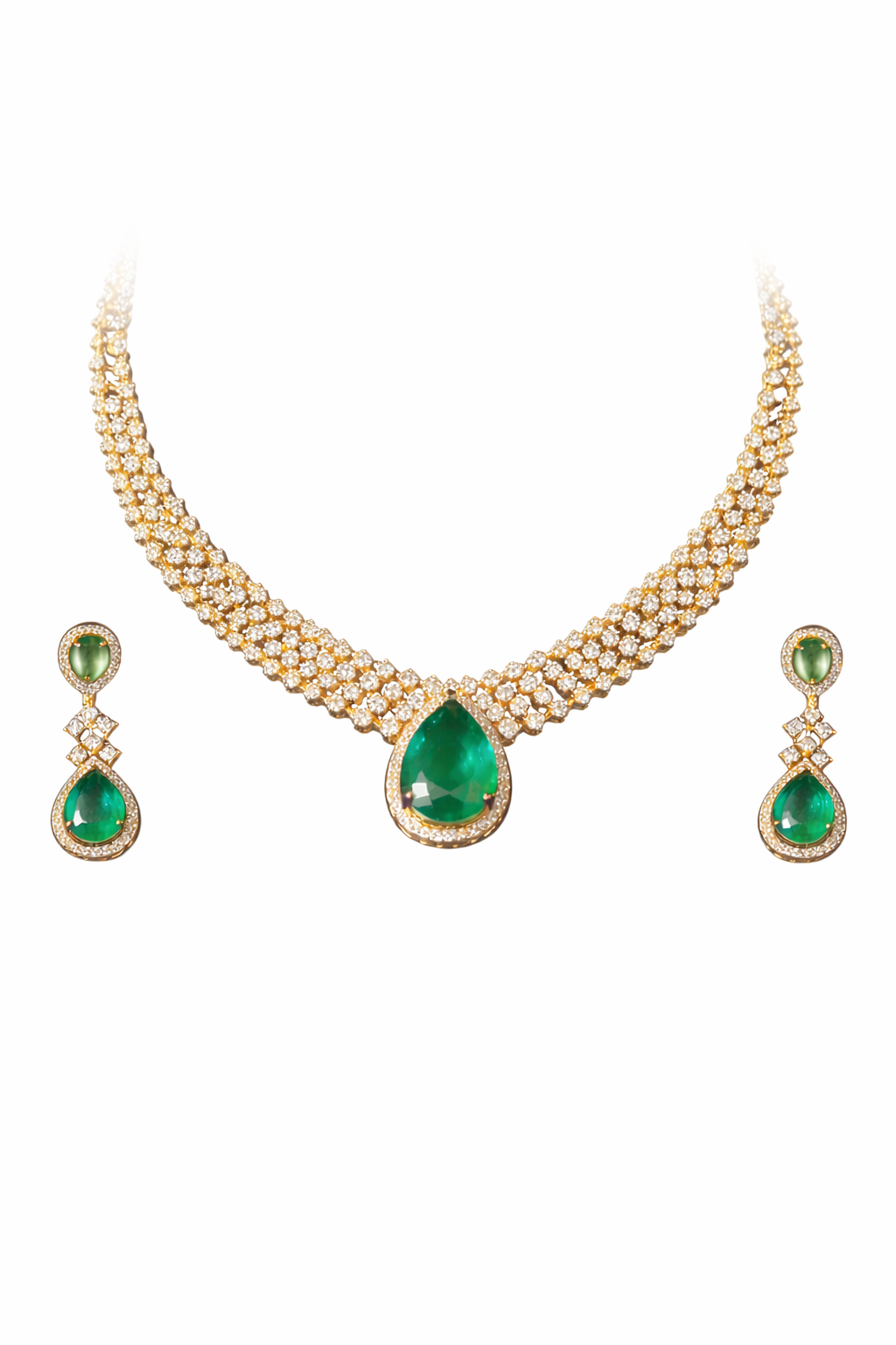 Elegant Dewdrop Mint Design CZ Gold-Plated Necklace Set for Women