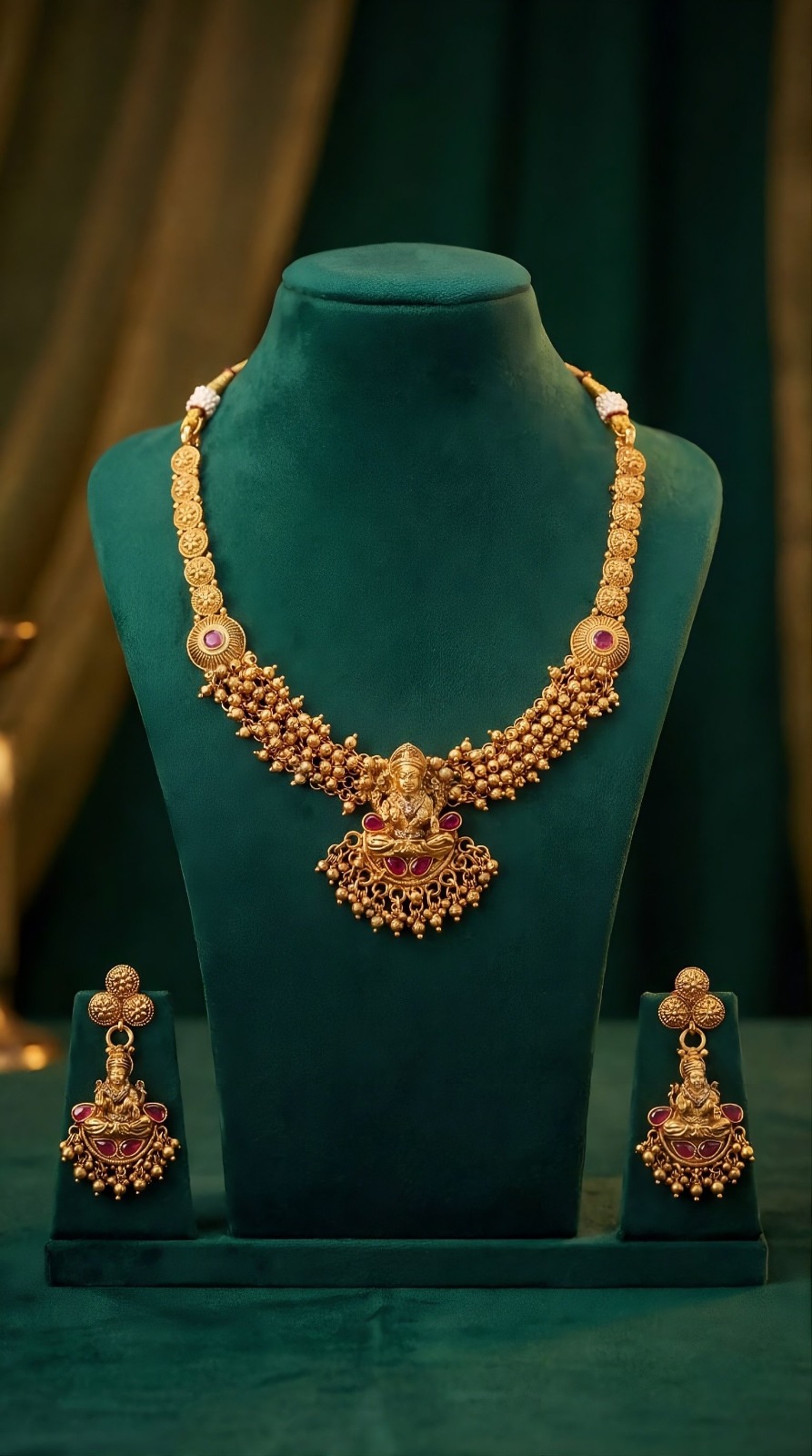 Classic Lakshmi Heritage Temple Necklace Set with Earrings