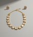 Experience the ethereal glow of our Mother-of-Pearl and Rose Quartz Layered Set, where traditional artistry meets modern sophistication. This masterfully handcrafted piece features iridescent, square-cut shell stones framed in artisanal gold-toned settings, cascading into triple tiers of polished blush quartz beads.